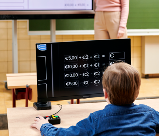 Ideaal voor leerlingen in het basisonderwijs die les volgen in een vast klaslokaal aan de hand van een smartboard.